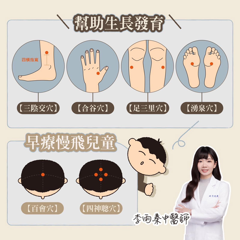 小兒雷射針灸治療,常使用幫助生長發育的穴位,例如:足三里、三陰交、合谷、湧泉等穴位,來達到促進成長的效果。